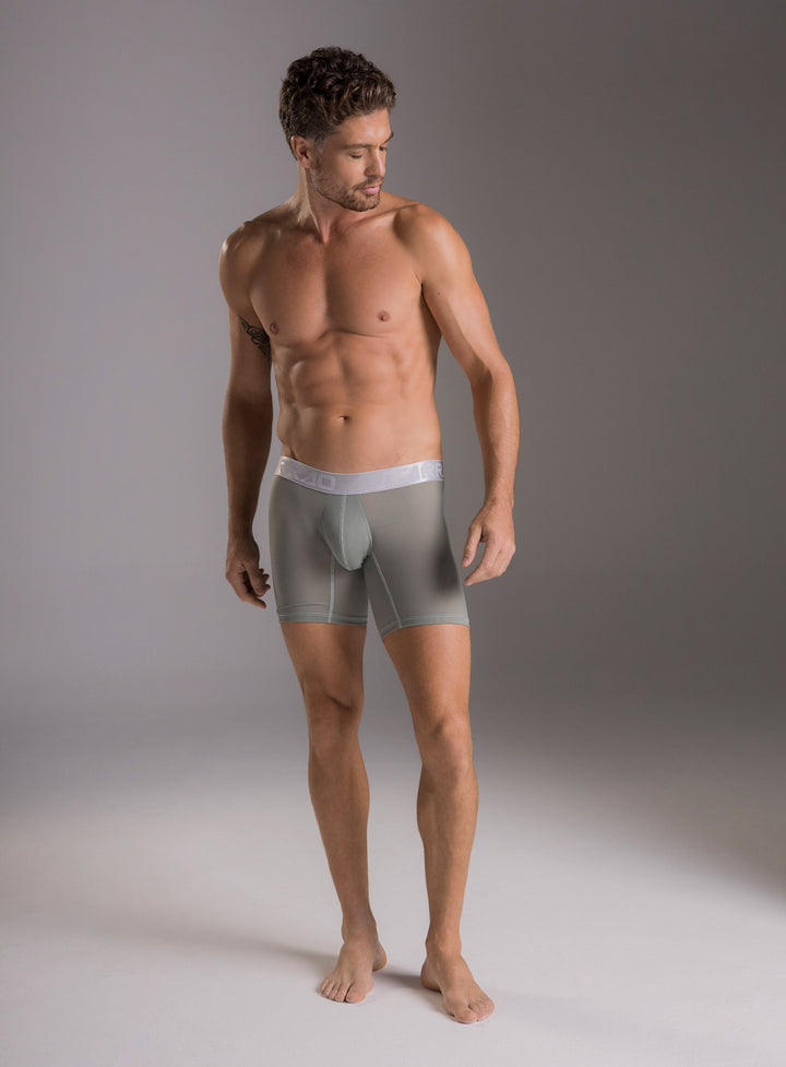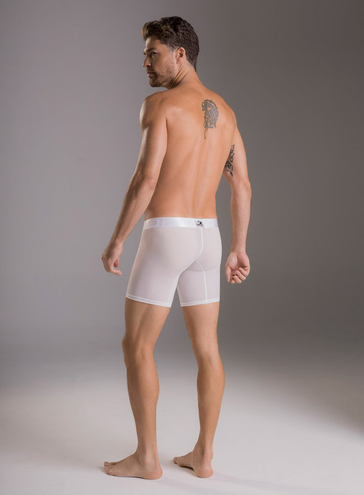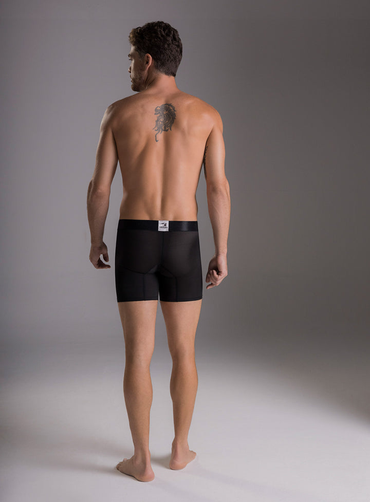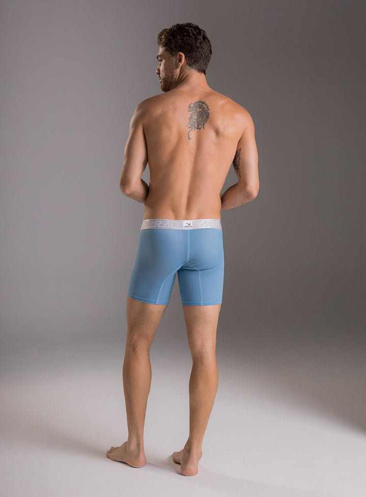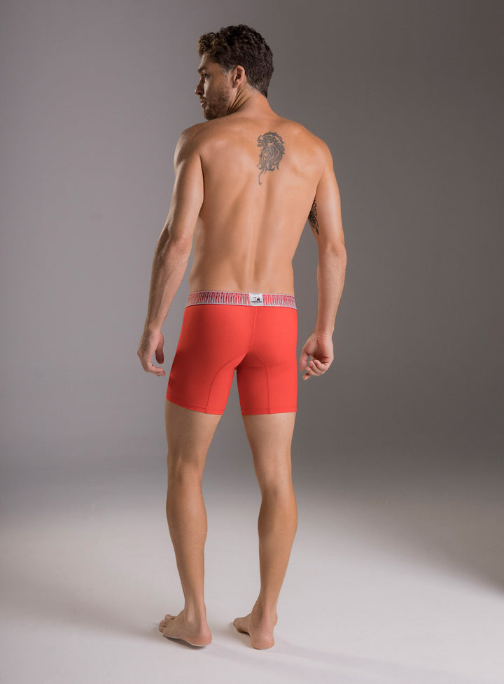 Boxer de talle largo a rayas y elaborado en microfibra. Su material es 93% poliamida y 7% elastano. Silueta ajustada y elástico de Tarrao contramarcado.