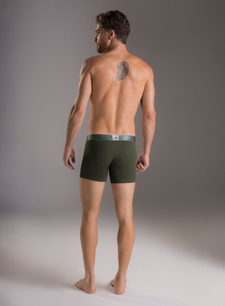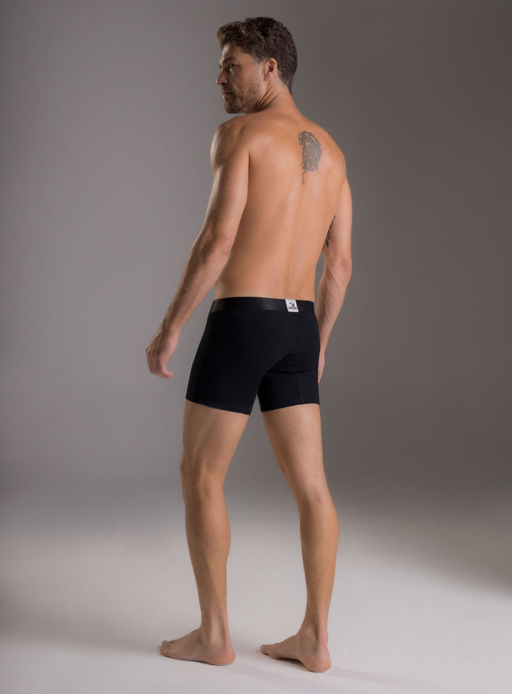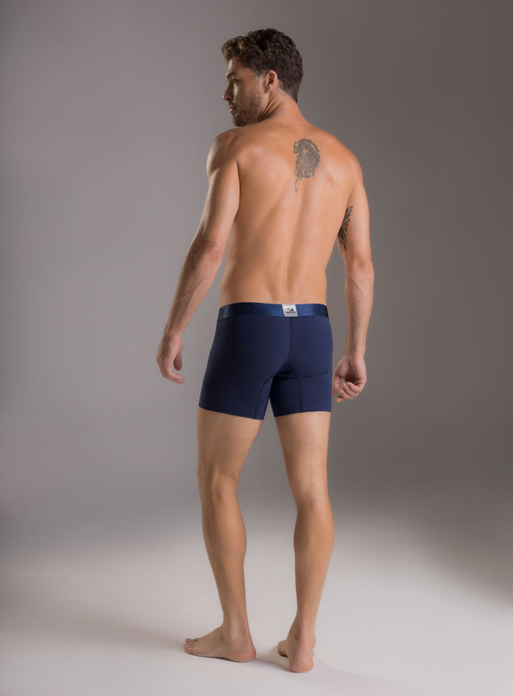 Bóxer fondo entero y de talle corto, fabricado en algodón 100% natural. Silueta ajustada y elástico contramarcado en cintura.