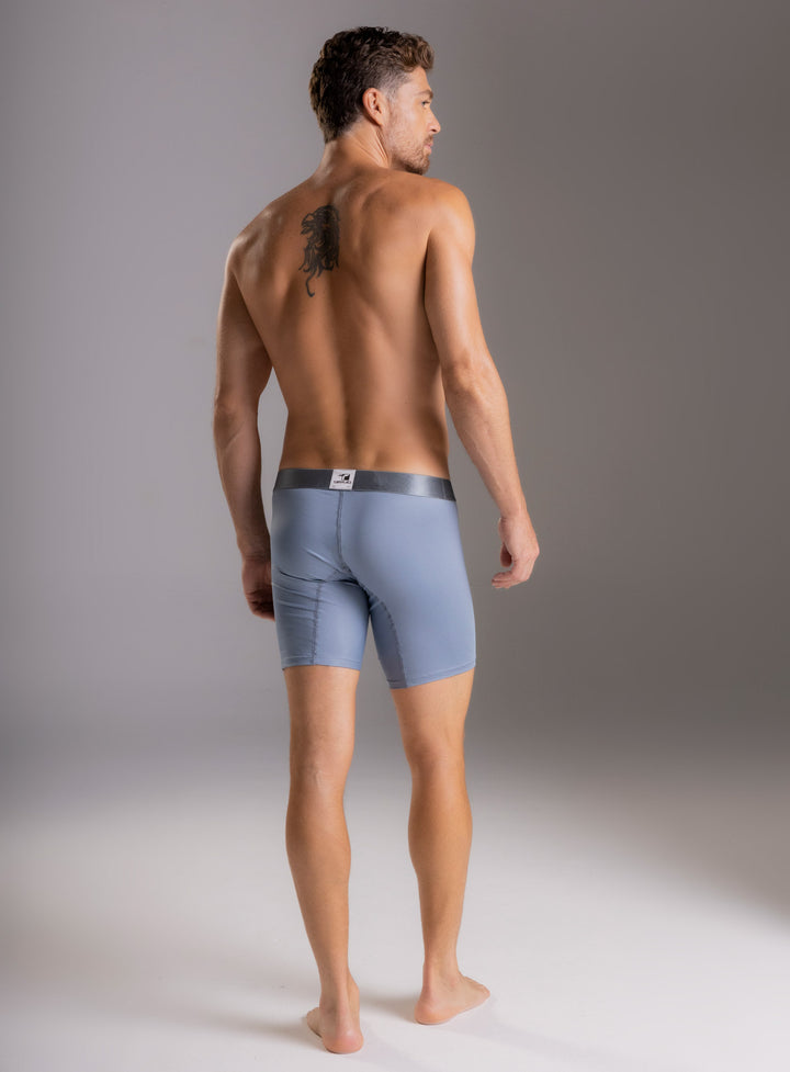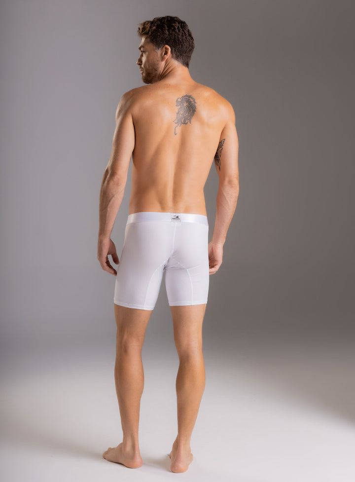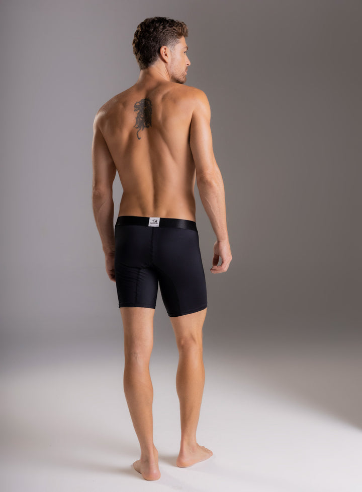 Bóxer fondo entero microperforado y de talle largo, fabricado en microfibra, su tela tiene una textura suave y con apariencia brillante. Su material es 79% poliéster y 21% elastano. Silueta ajustada, costuras reforzadas y elástico contramarcado en cintura.