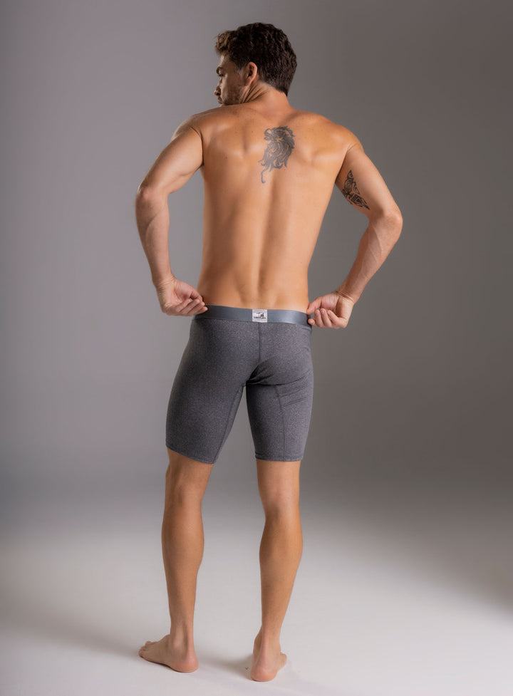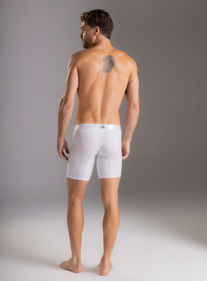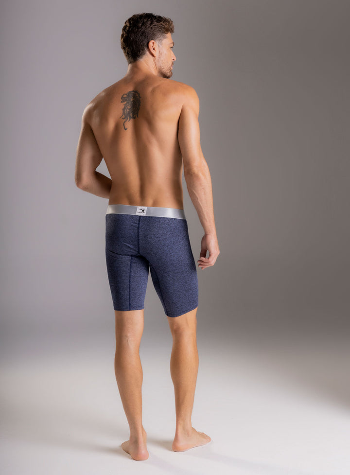 - Bóxer fondo entero y de talle largo, fabricado en microfibra. Su material es 79% poliéster y 21% elastano.