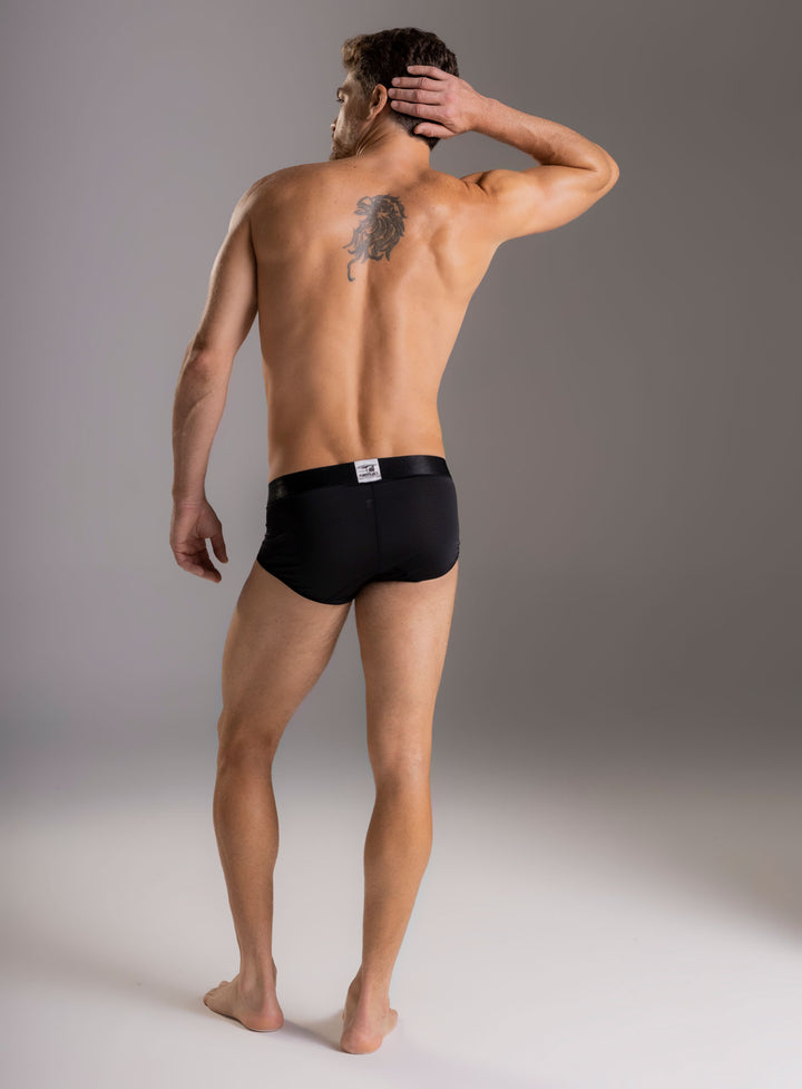 Brief fondo entero, elaborado en microfibra. Su material es 79% poliéster y 21% elastano. Silueta ajustada y elástico contramarcado en cintura.